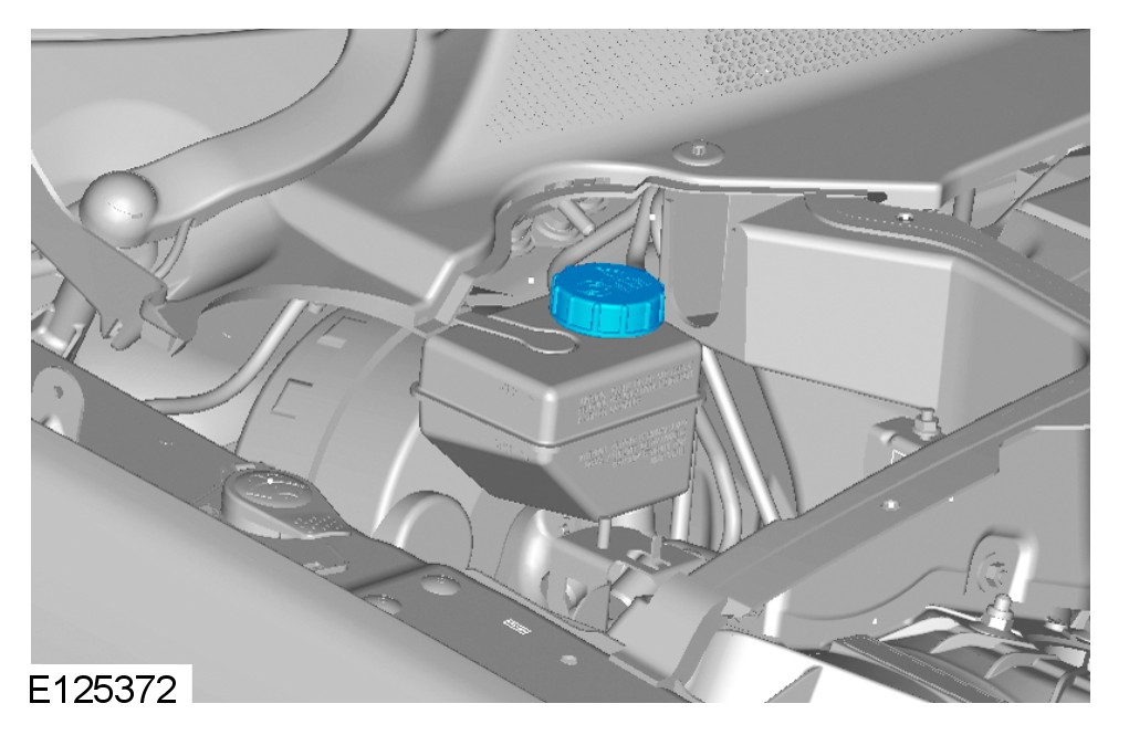 CAUTION: Brake fluid will damage paint finished surfaces. If spilled, immediately remove the fluid and clean the area with water.