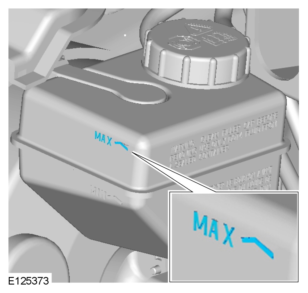14 Fill the brake fluid reservoir to the MAX mark.