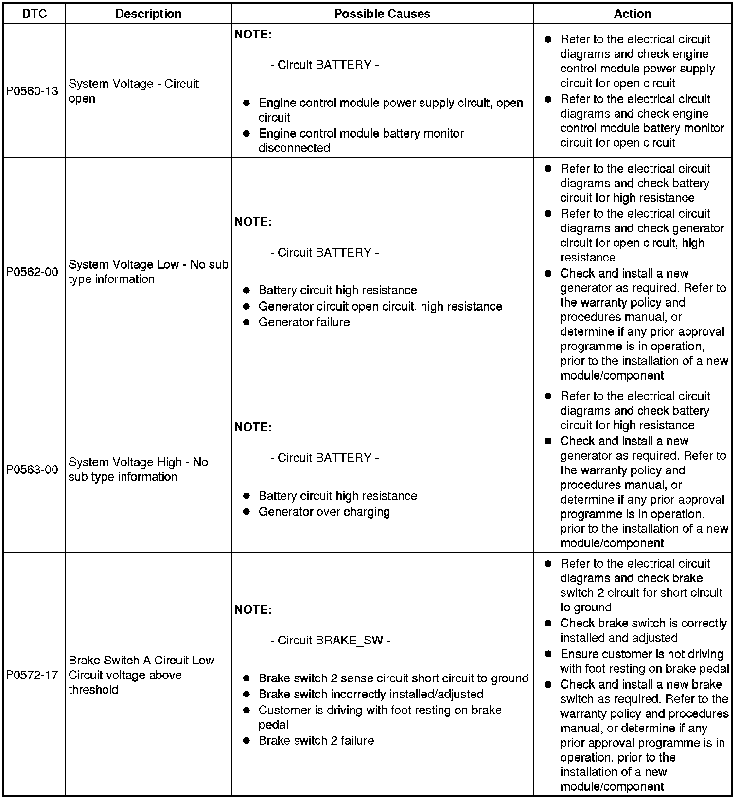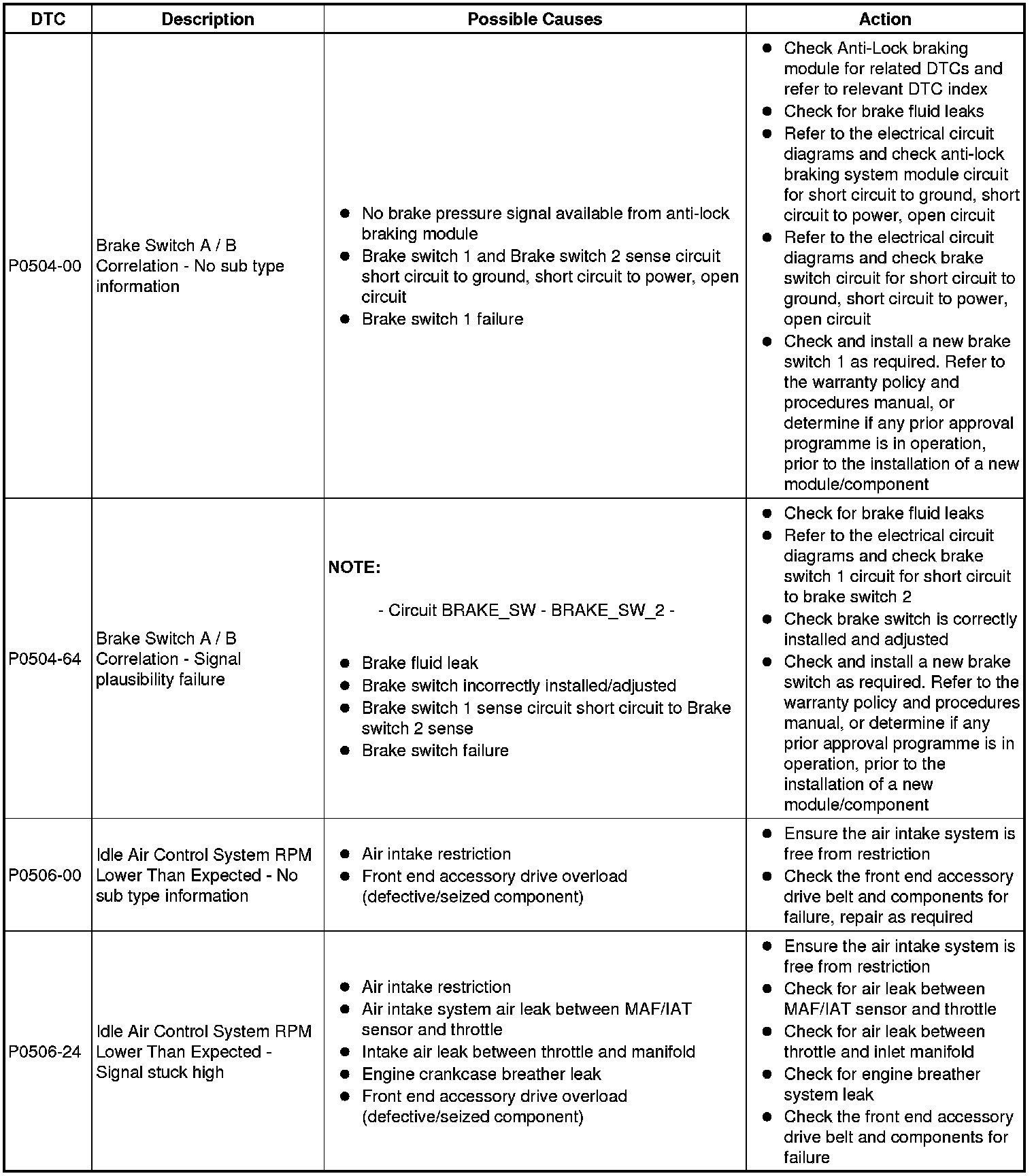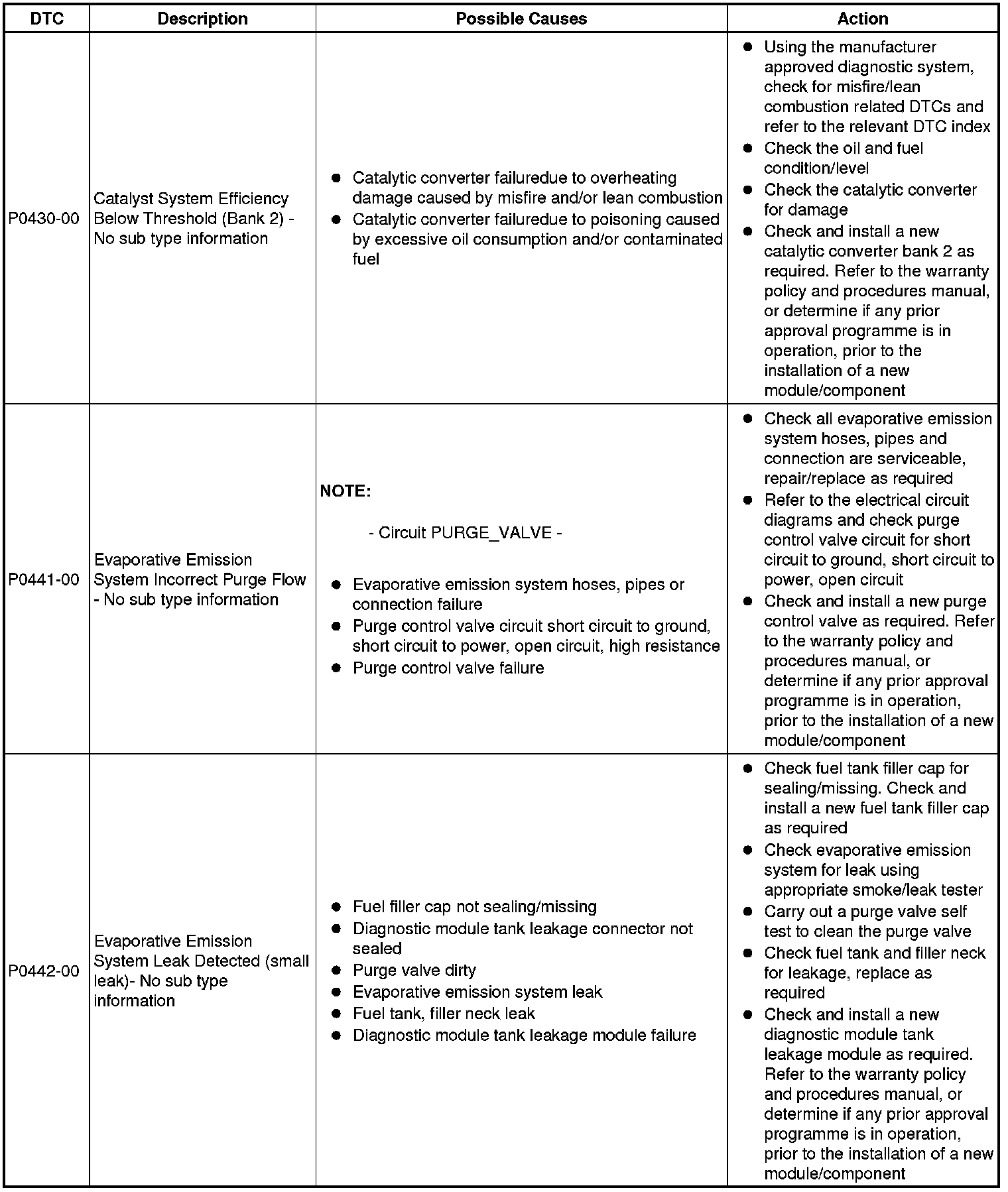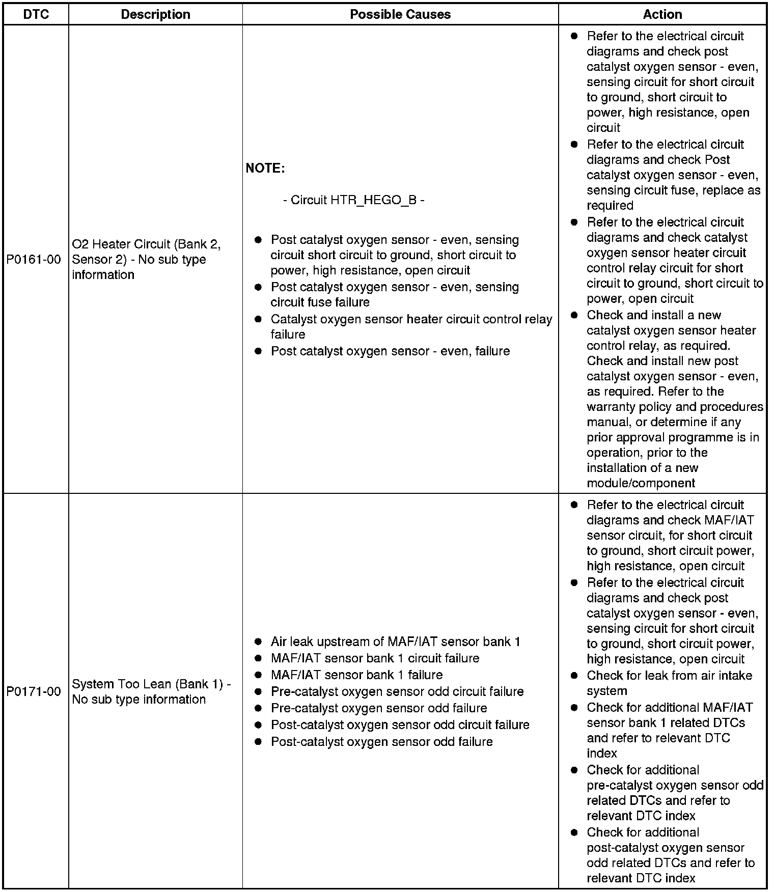 Diagnostic Trouble Code (DTC) Index