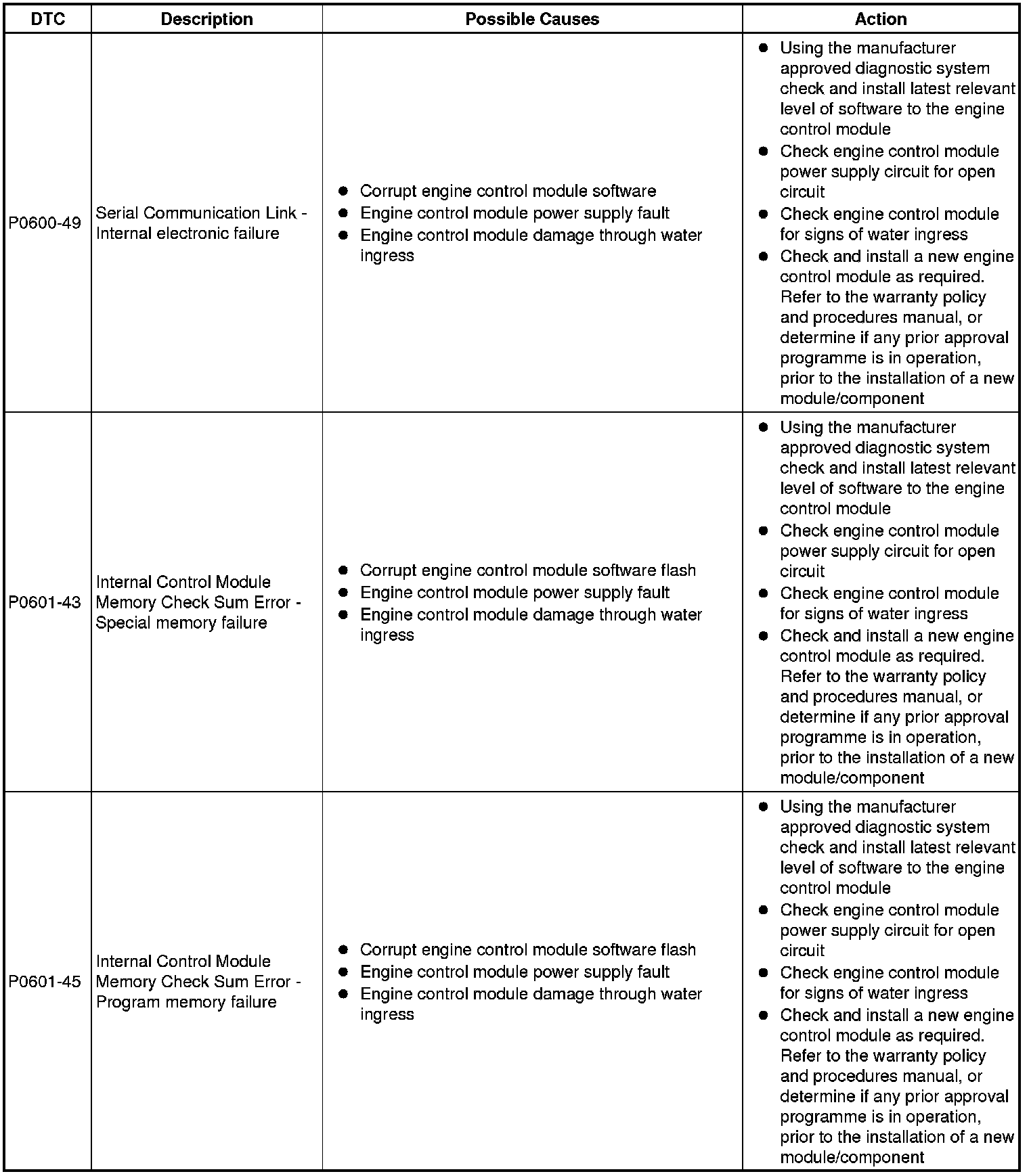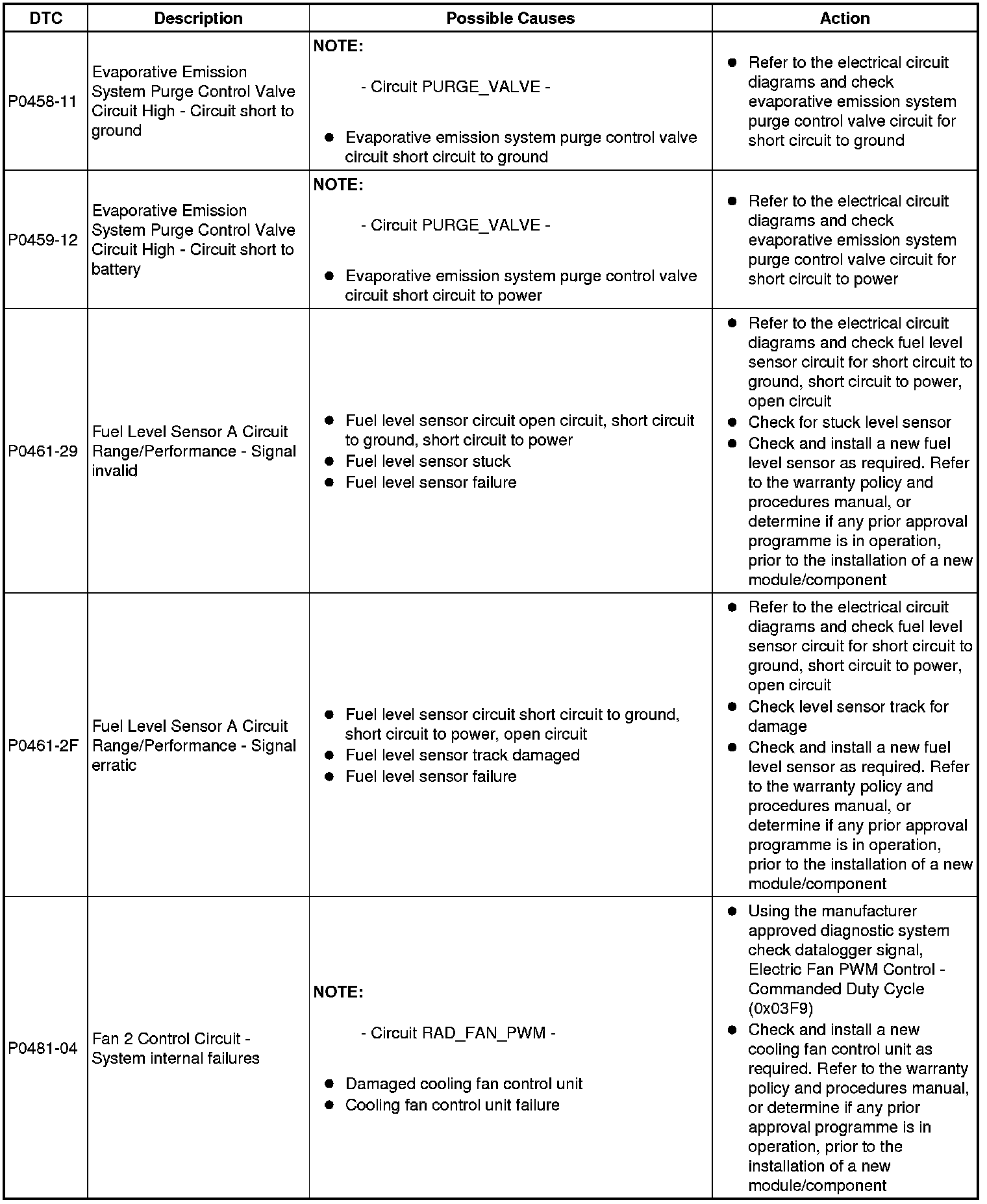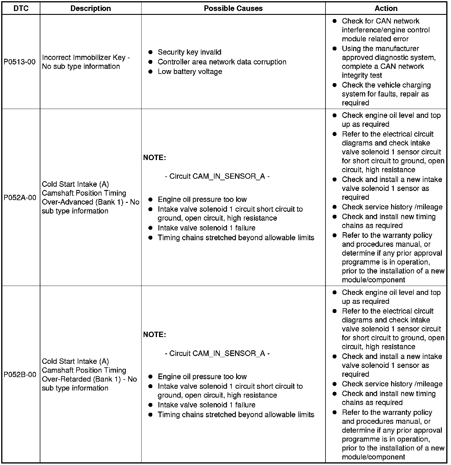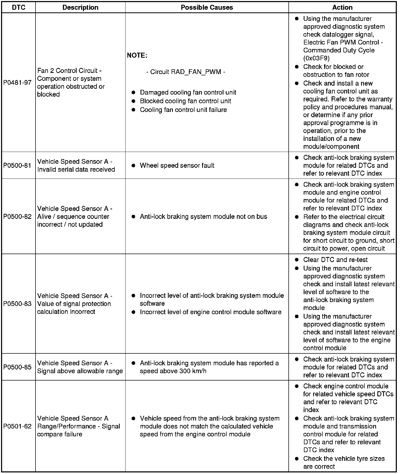 Diagnostic Trouble Code (DTC) Index