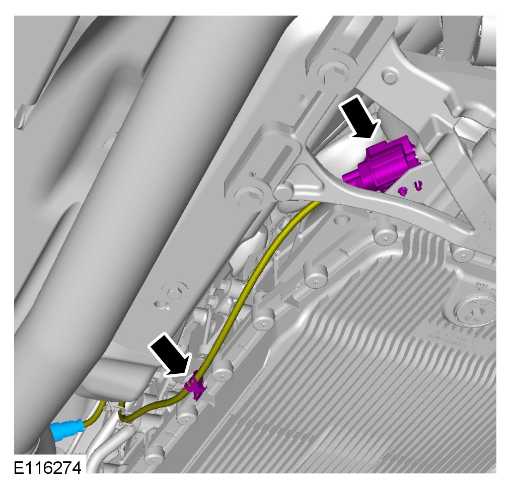 CAUTION: Make sure the catalyst monitor sensor wiring harness is not twisted more than 180 degrees and is not in contact with either the exhaust or driveshaft.