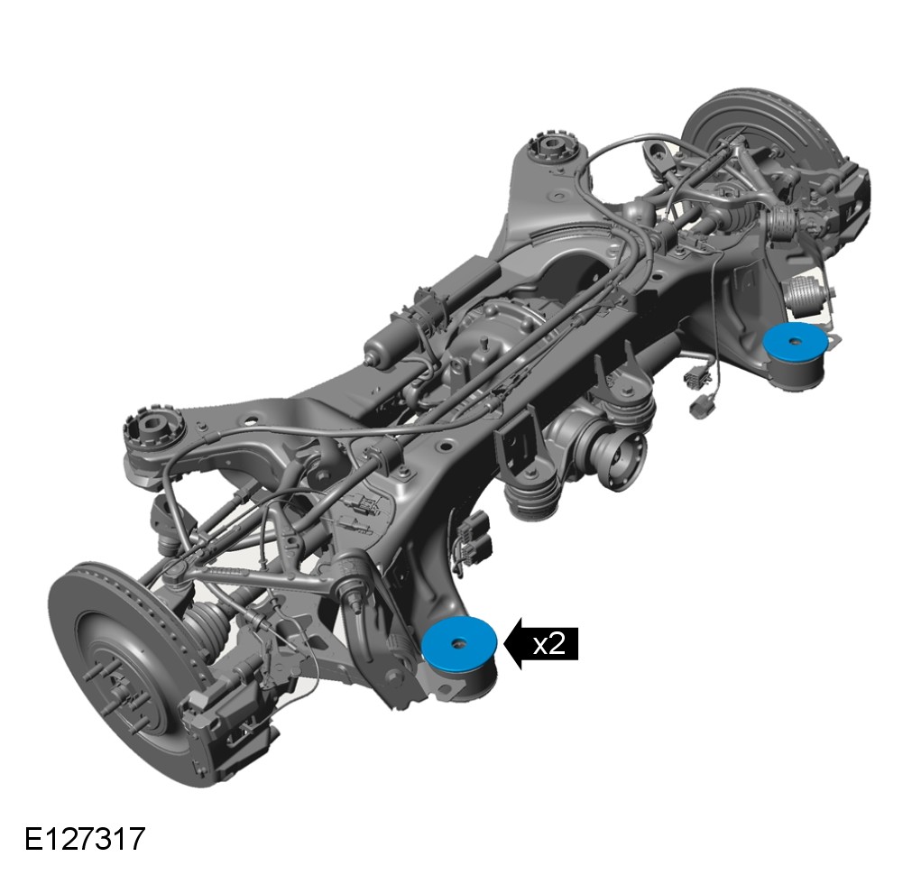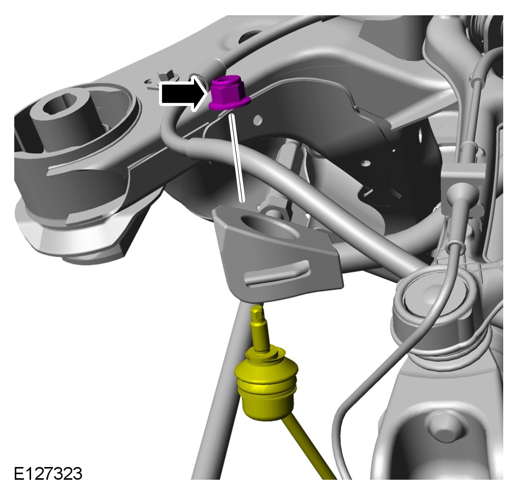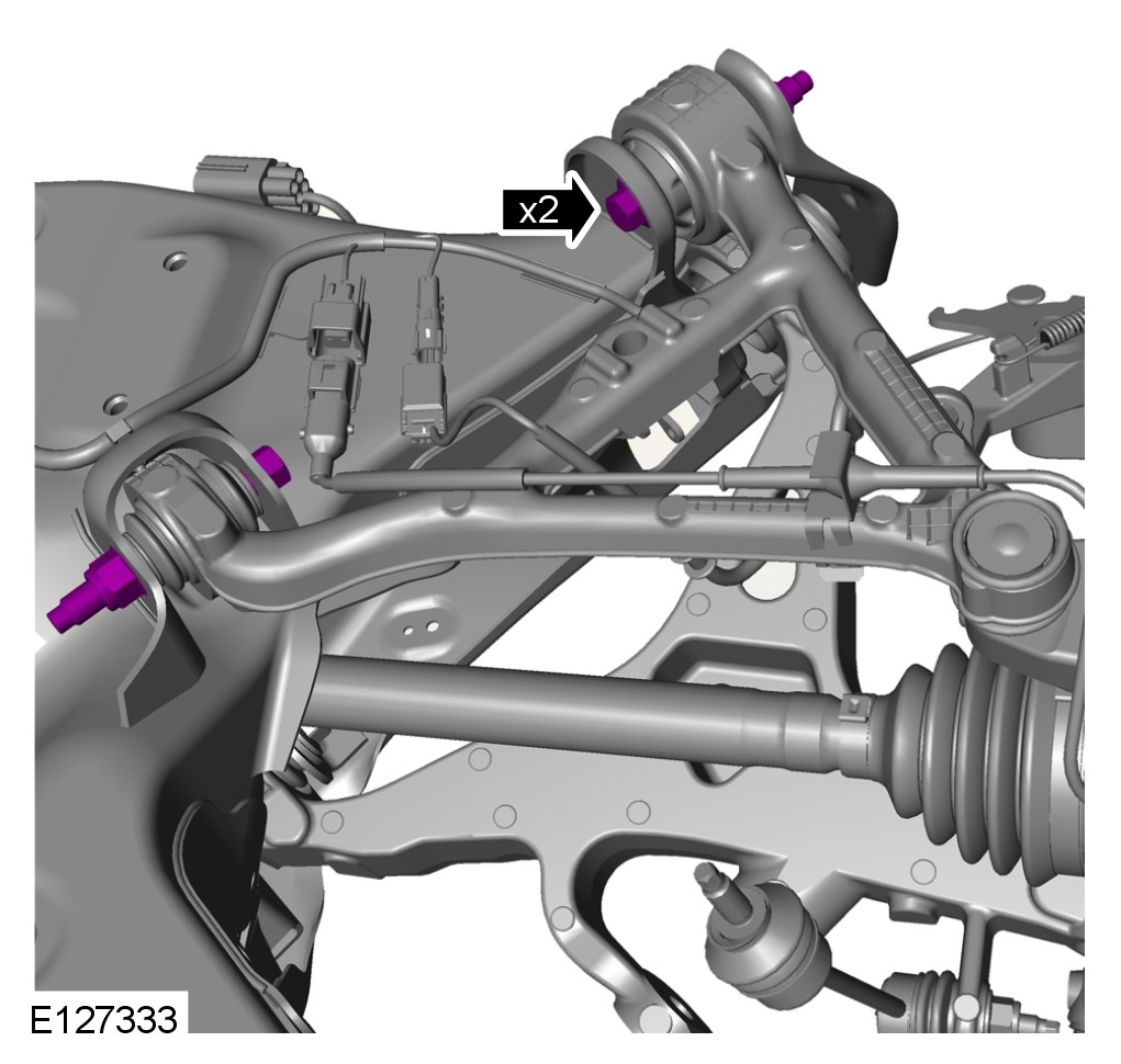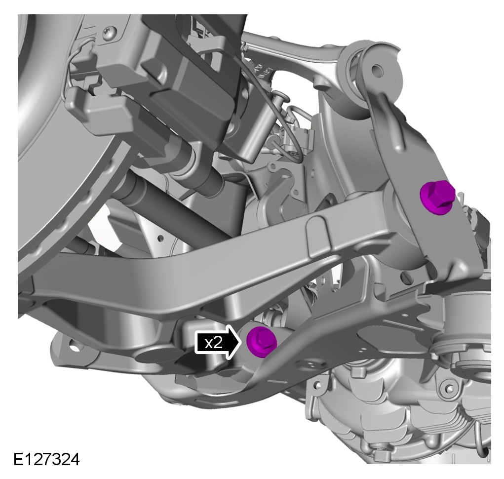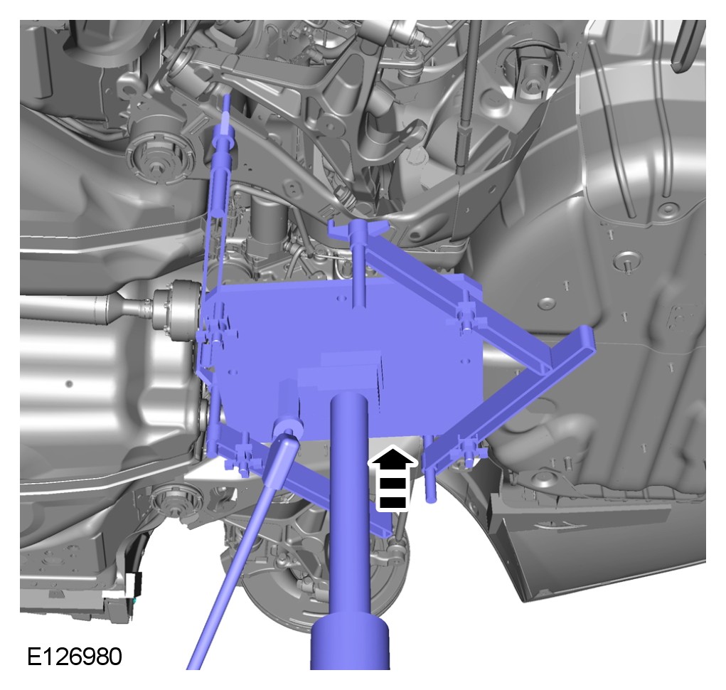 CAUTION: Make sure when lowering the rear subframe damage does not occur to the surrounding components. Failure to follow this instruction may result in damage to the vehicle.