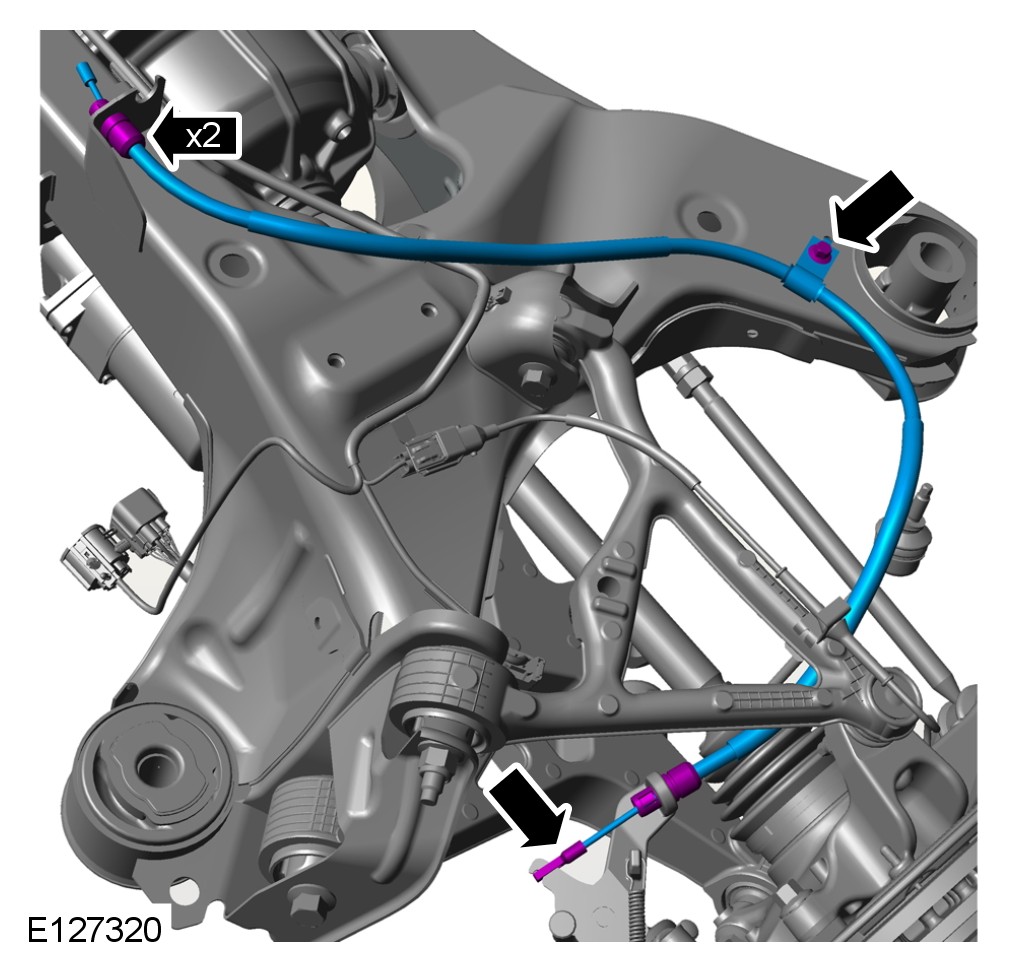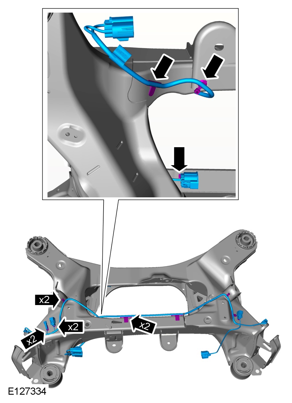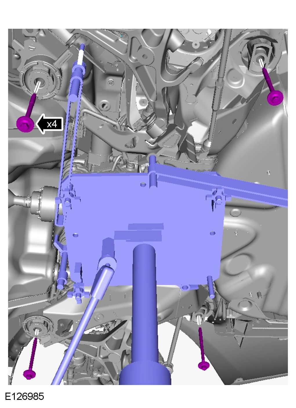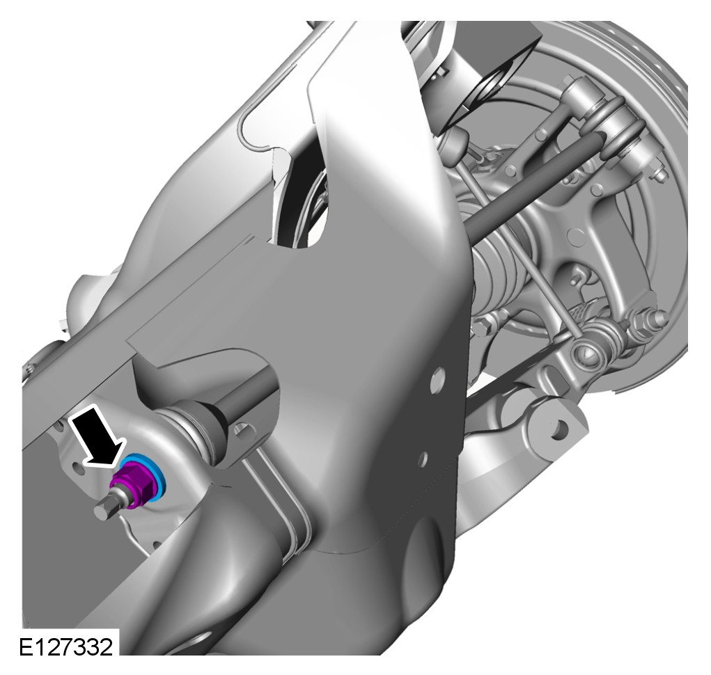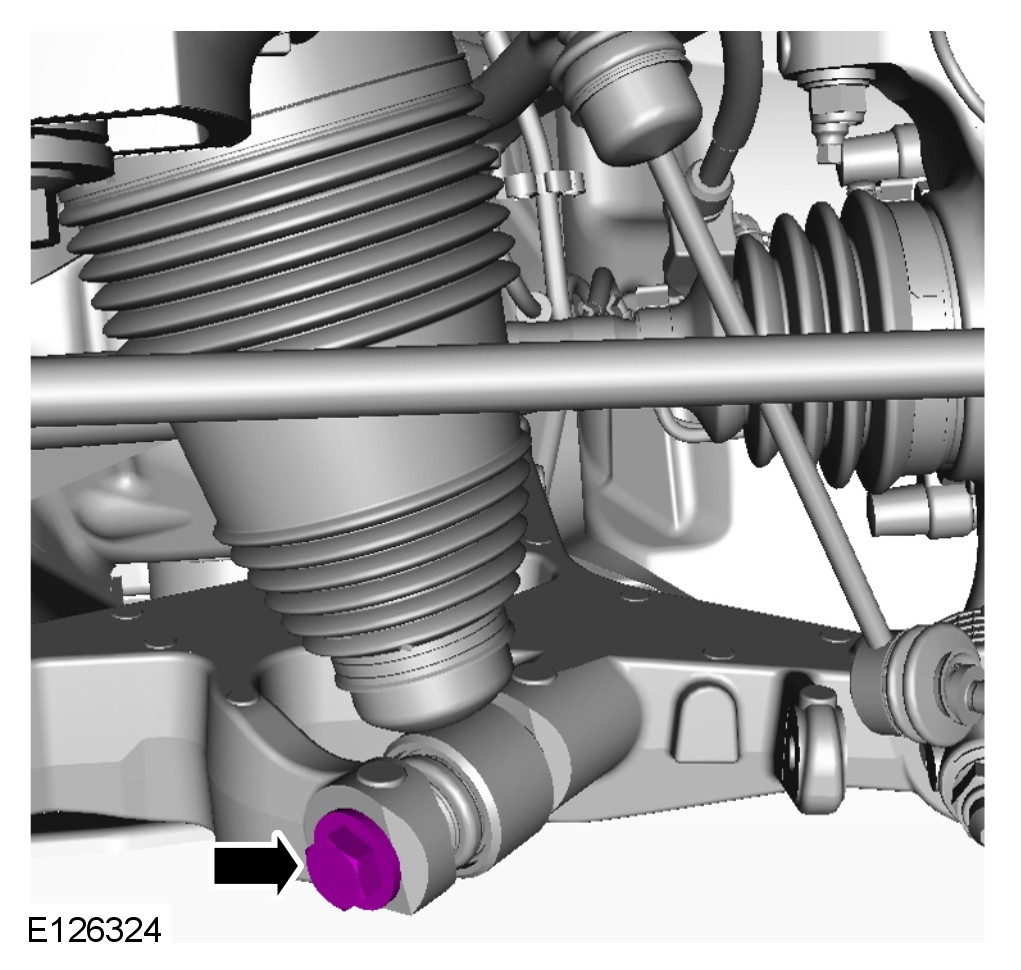 CAUTION: Make sure when lowering the rear subframe damage does not occur to the surrounding components. Failure to follow this instruction may result in damage to the vehicle.