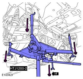 10. WARNING: Install the M12 subframe bolts prior to removing axle support.