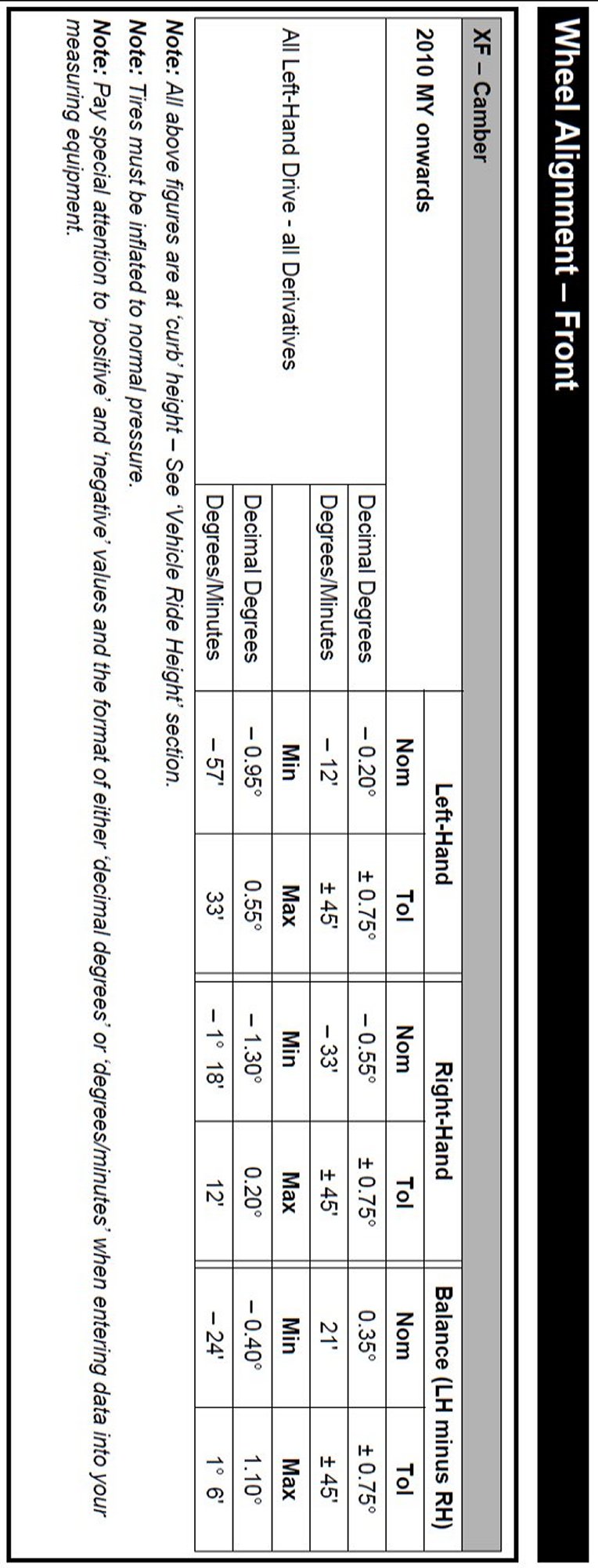 Camber Specifications