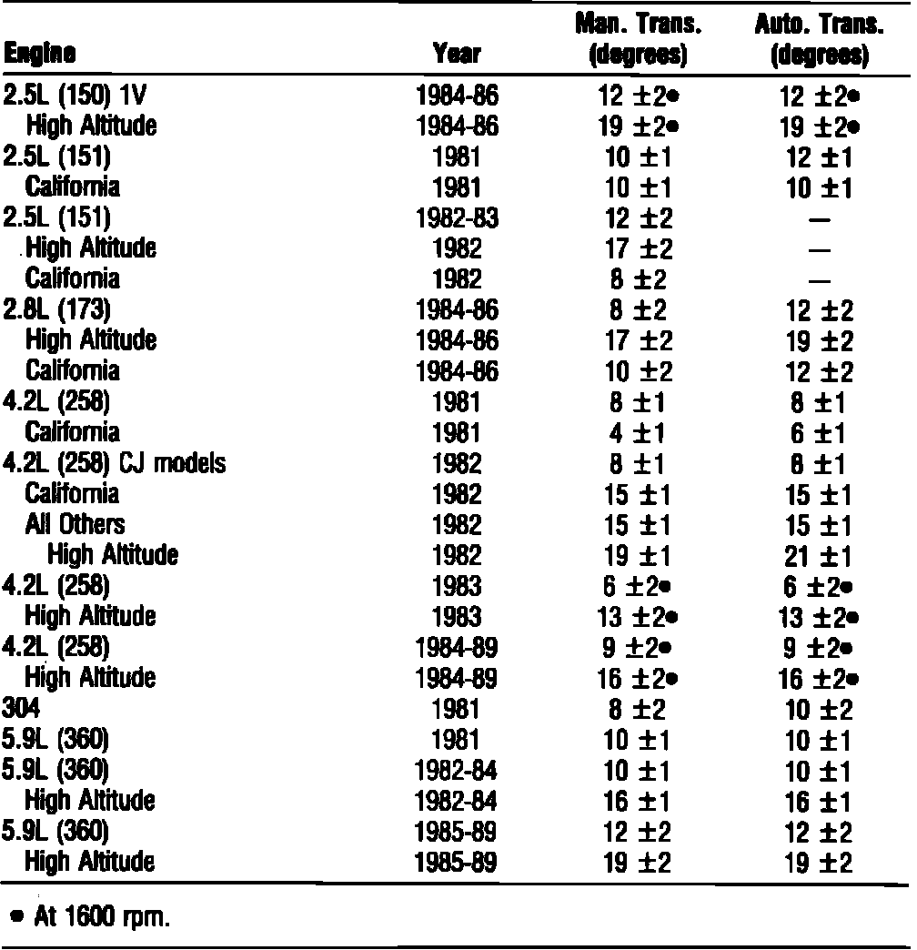 Ignition Timing: Specifications
