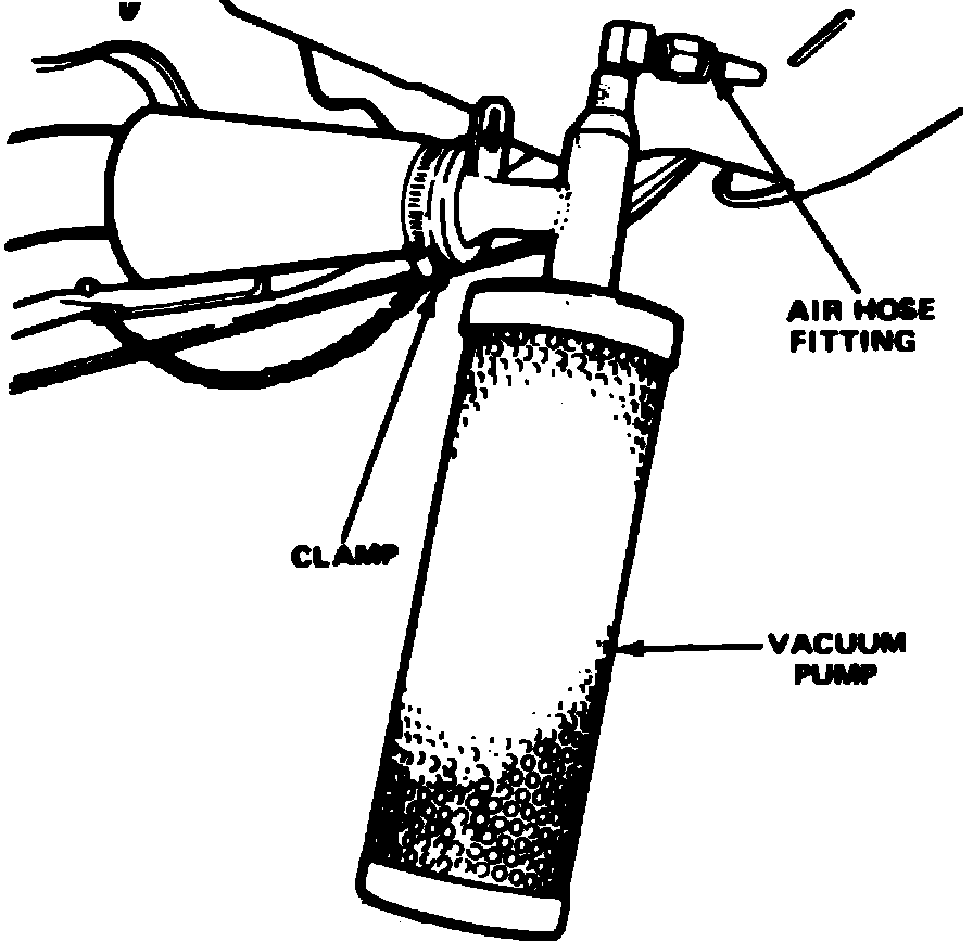 11. Disconnect air hose from vacuum pump, remove pump from tailpipe and lower vehicle.