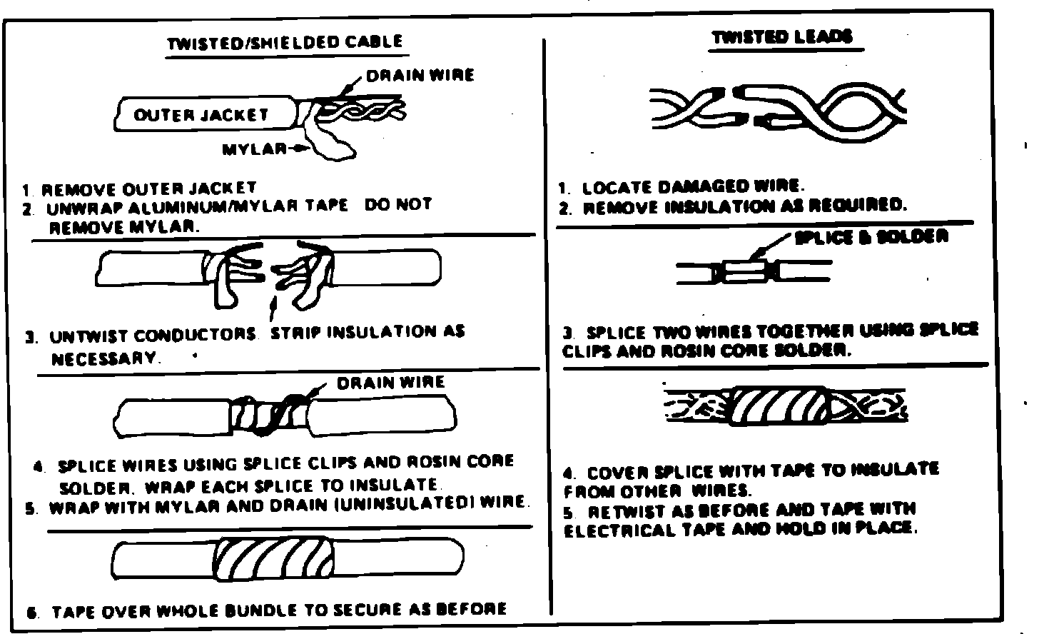 If damaged or defective, engine compartment wiring harness must be replaced with an exact replacement. However, single wires can be repaired as shown, Fig. 253. Use only wire of the proper gauge with high temperature insulation. To ensure the best possible bond at wire splices, all connections must be soldered.