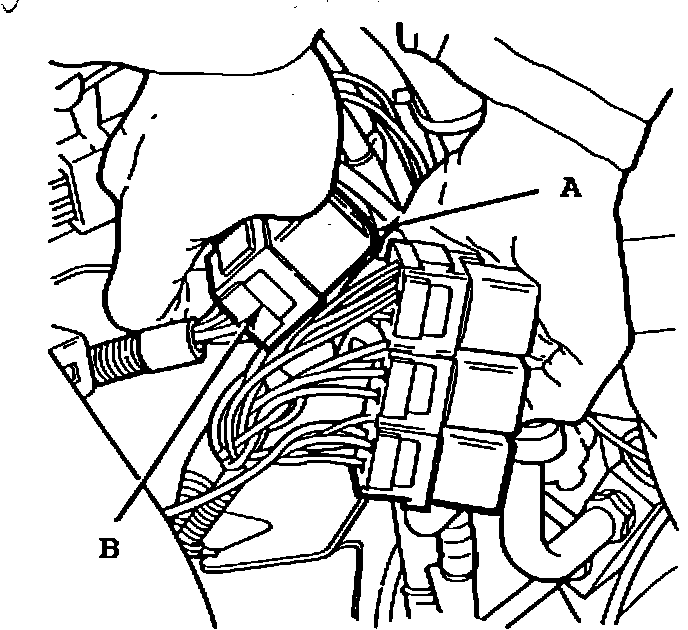 6. Pry the white plastic retaining clip (B) from the relay connector. Figure 1