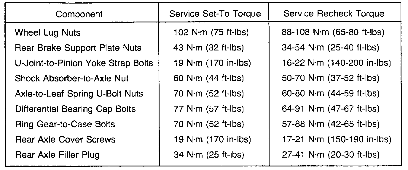 Torque Specifications, Rear:
