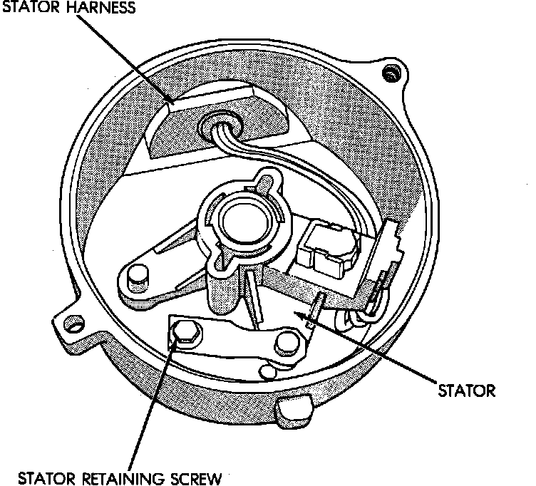 4. Mark the stator location in the distributor housing as a reference for reinstallation, and remove the stator retaining screw.