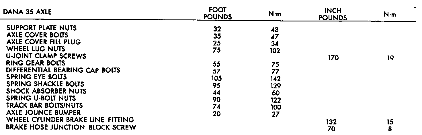 Dana 35 Torque Specifications: