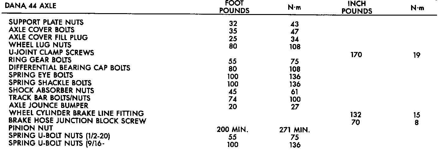 Dana 44 Torque Specifications: