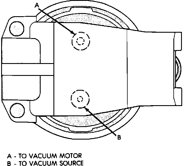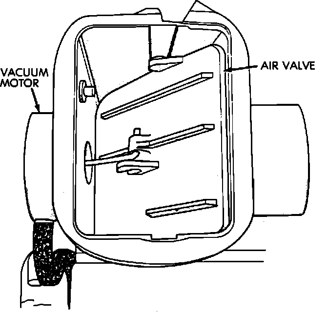 8. If the air valve manually operates freely and the hoses are not leaking or disconnected, connect a vacuum hose from an intake manifold source directly to the vacuum motor and start the engine.