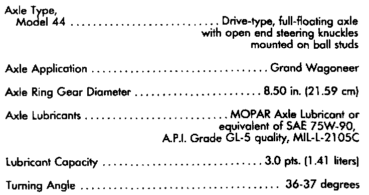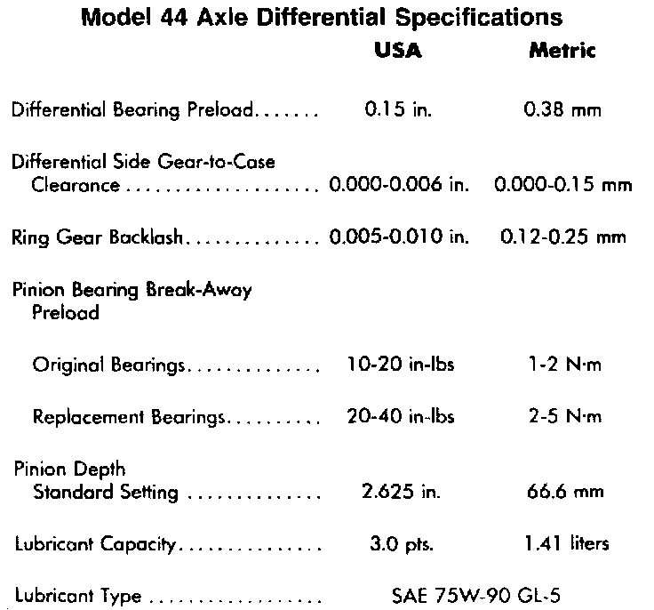 Model 44 Axle Specifications: