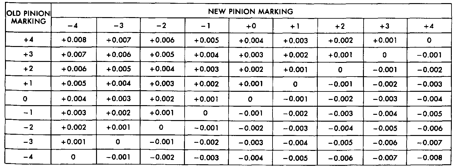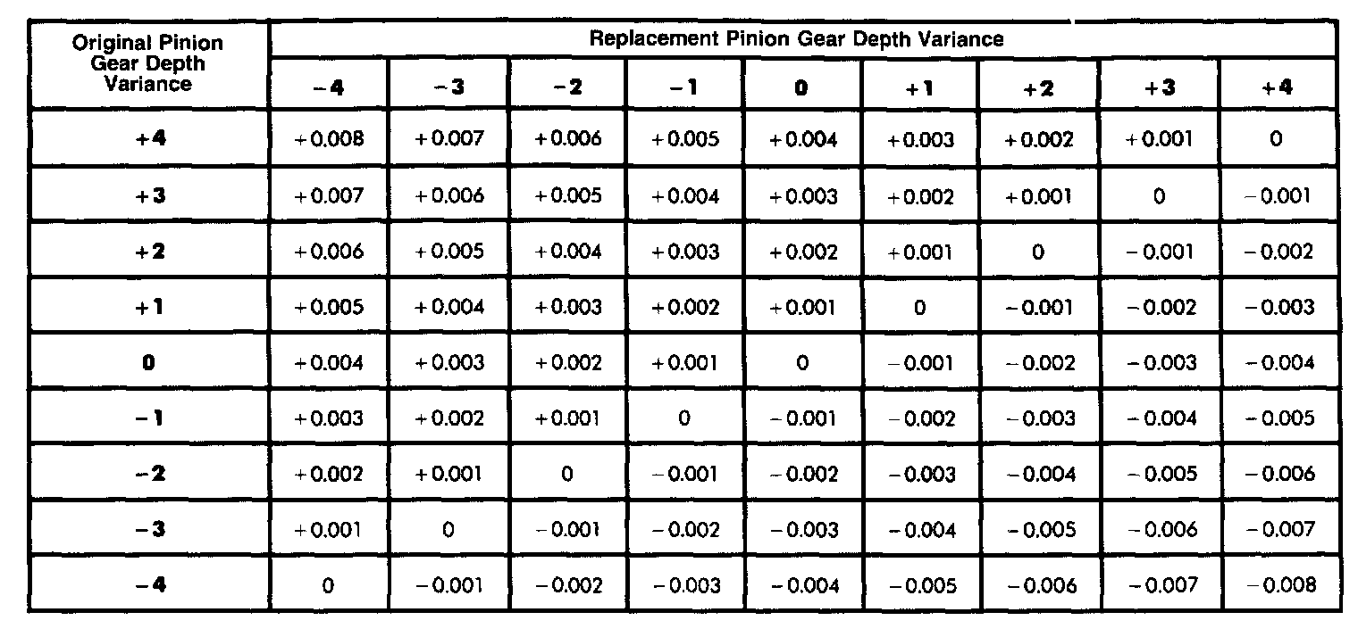 Pinion Gear Depth Variance Chart: