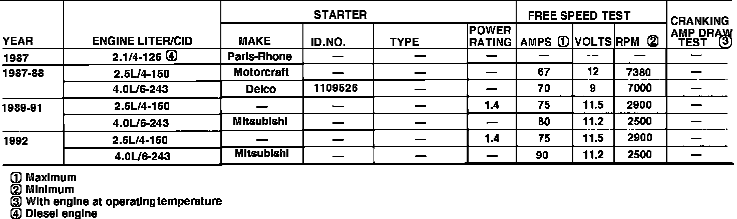 Starter Motor Specifications: