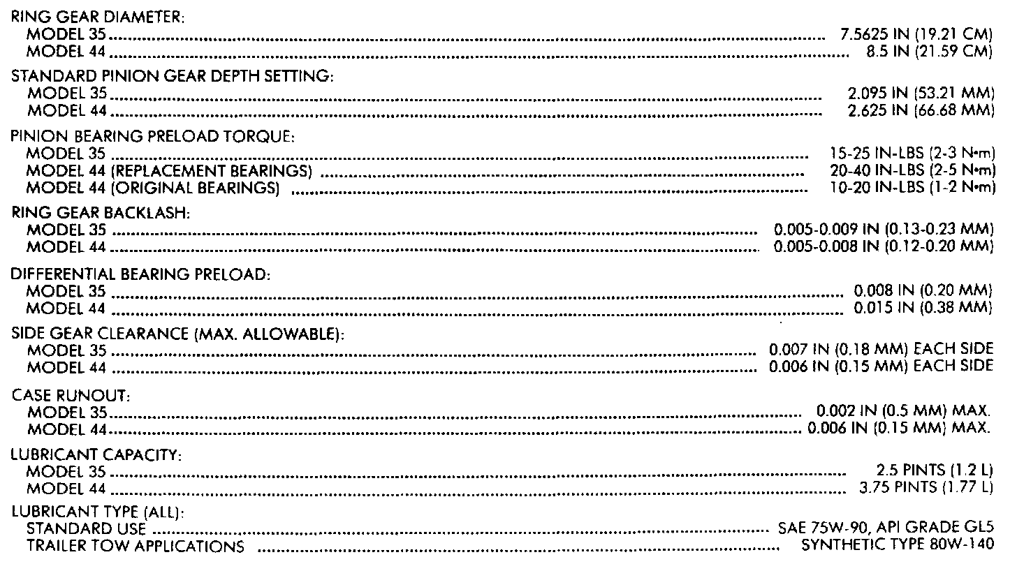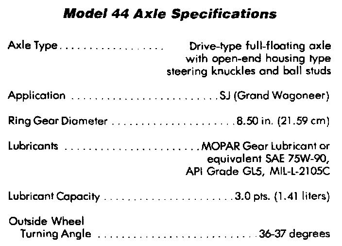 Model 44 Axle Specifications: