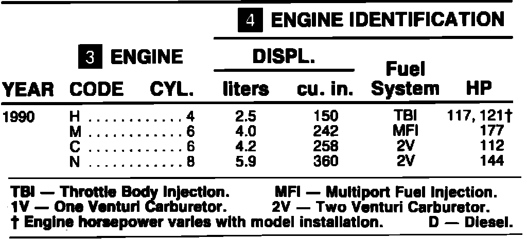 ENGINE IDENTIFICATION 1990: