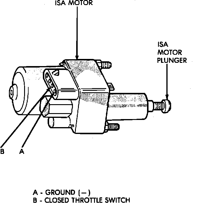 NOTE: All testing must be performed with the idle speed actuator (ISA) motor plunger fully extended (just like it would be if the engine were just shut off).