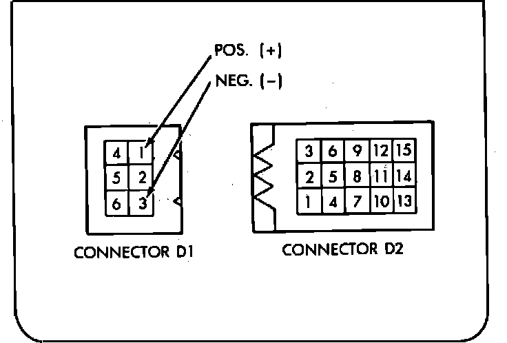 4. Turn the ignition switch ON and check the voltage across diagnostic connector 2 (D2) pins 13 and 7 (ground). Voltage should be close to zero at closed throttle and greater than 2 volts when off the closed throttle position.
