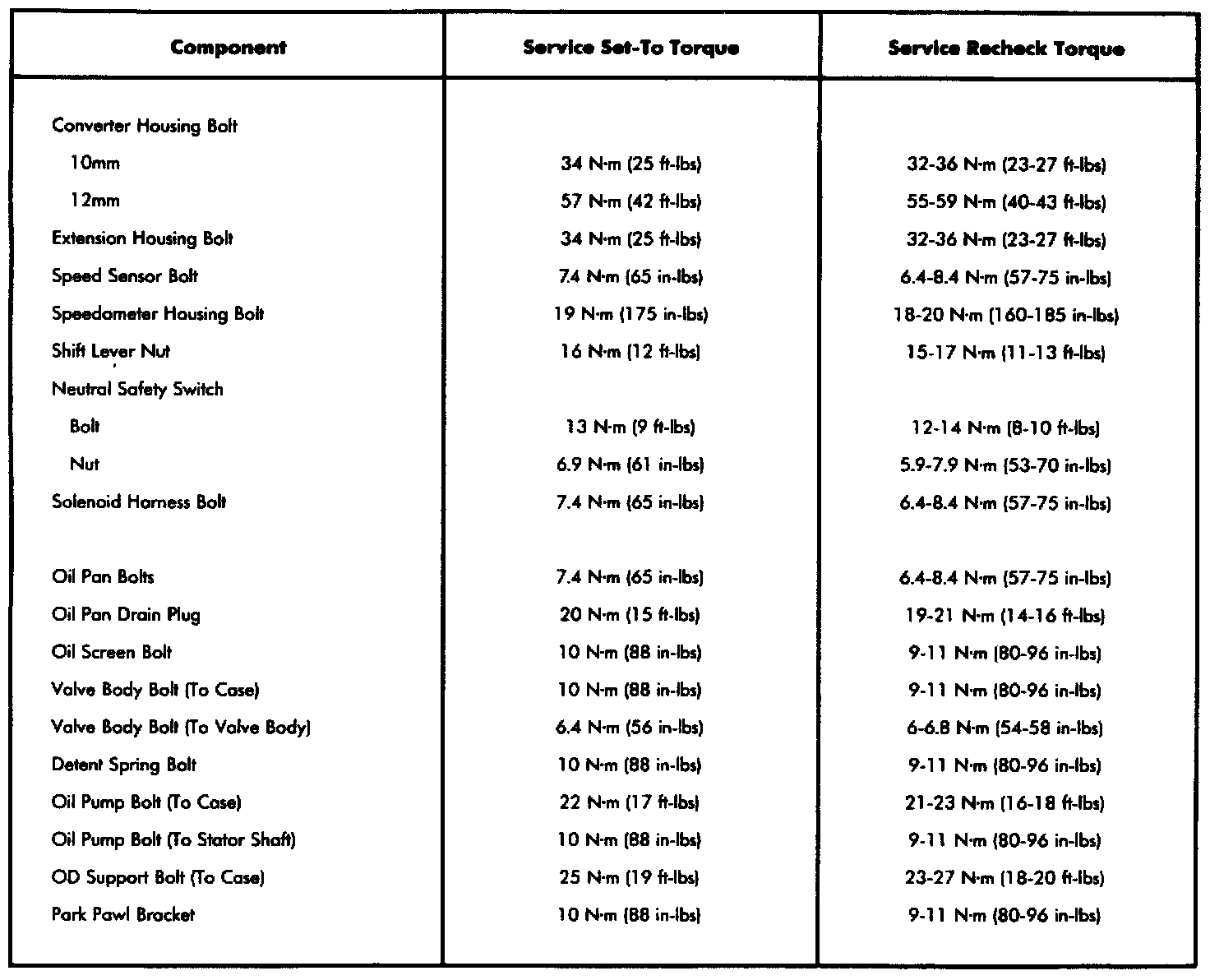 Torque Specifications: