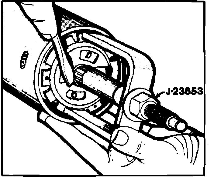 b. If steering shaft is not a metric type, use lock plate compressor tool No. J-23653 to compress lock plate and remove snap ring.
