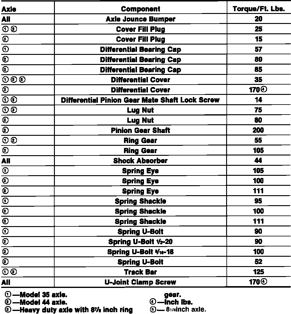 Tightening Specifications: