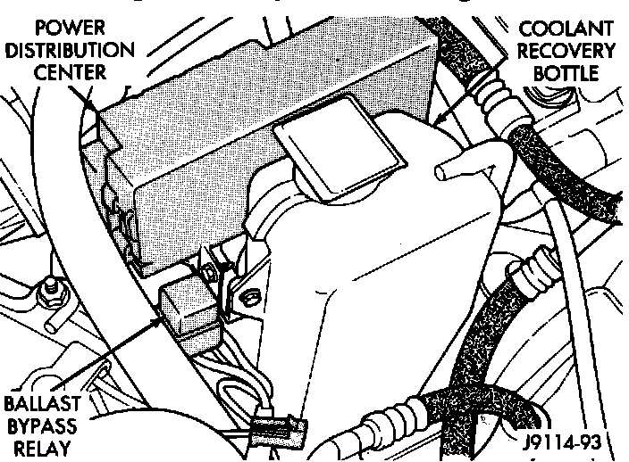 9. On XJ and MJ models, inspect the ballast bypass resistor connections.