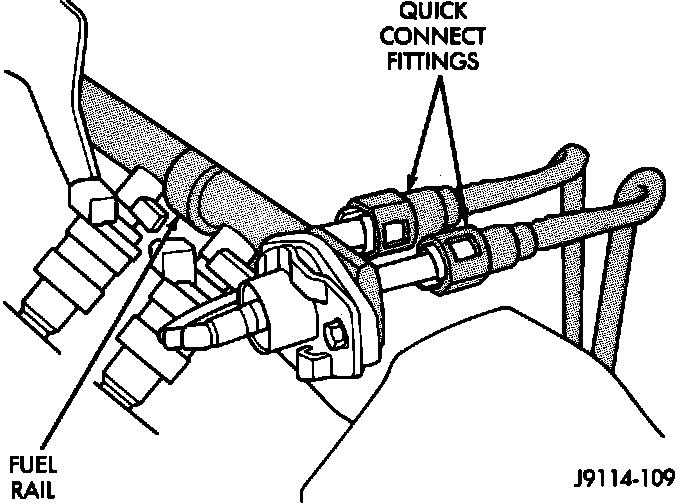 11. Inspect fuel tube quick-connect fitting-to-fuel rail connections.