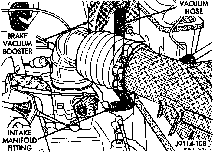 14. If equipped with vacuum brake booster, verify that vacuum booster hose is firmly connected to fitting on intake manifold. Also check connection to brake vacuum booster.