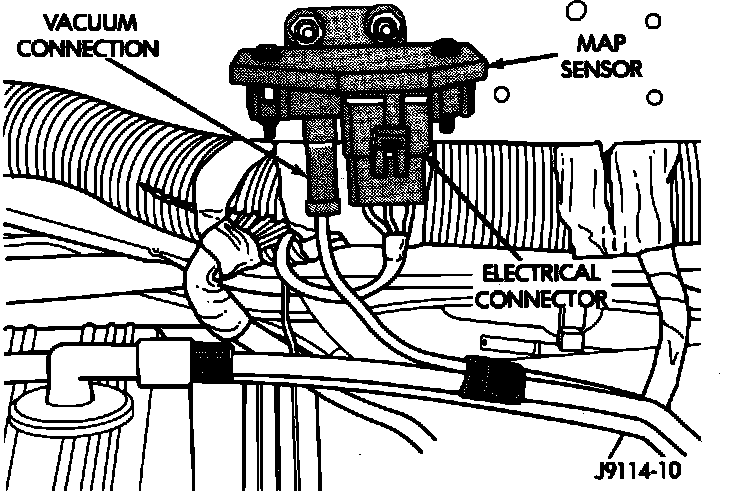 20. Verify that MAP sensor electrical connector is firmly connected to MAP sensor. Verify that vacuum hose is firmly connected to MAP sensor and to the intake manifold.