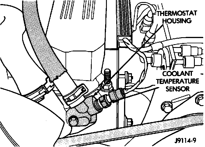 23. Verify that wire harness connector is firmly connected to the coolant temperature sensor.
