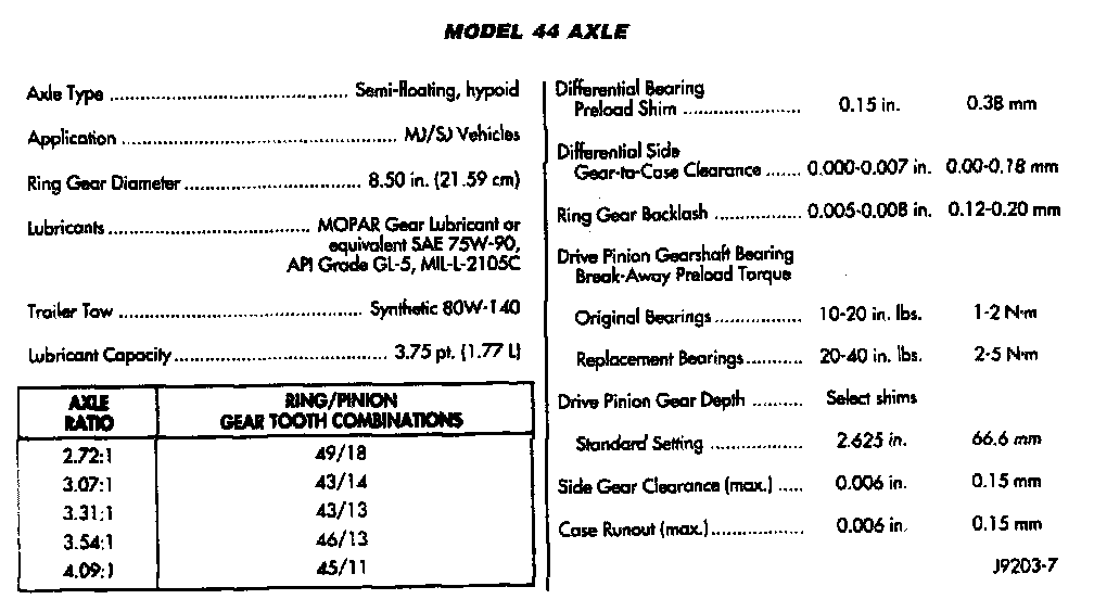Axle Specifications