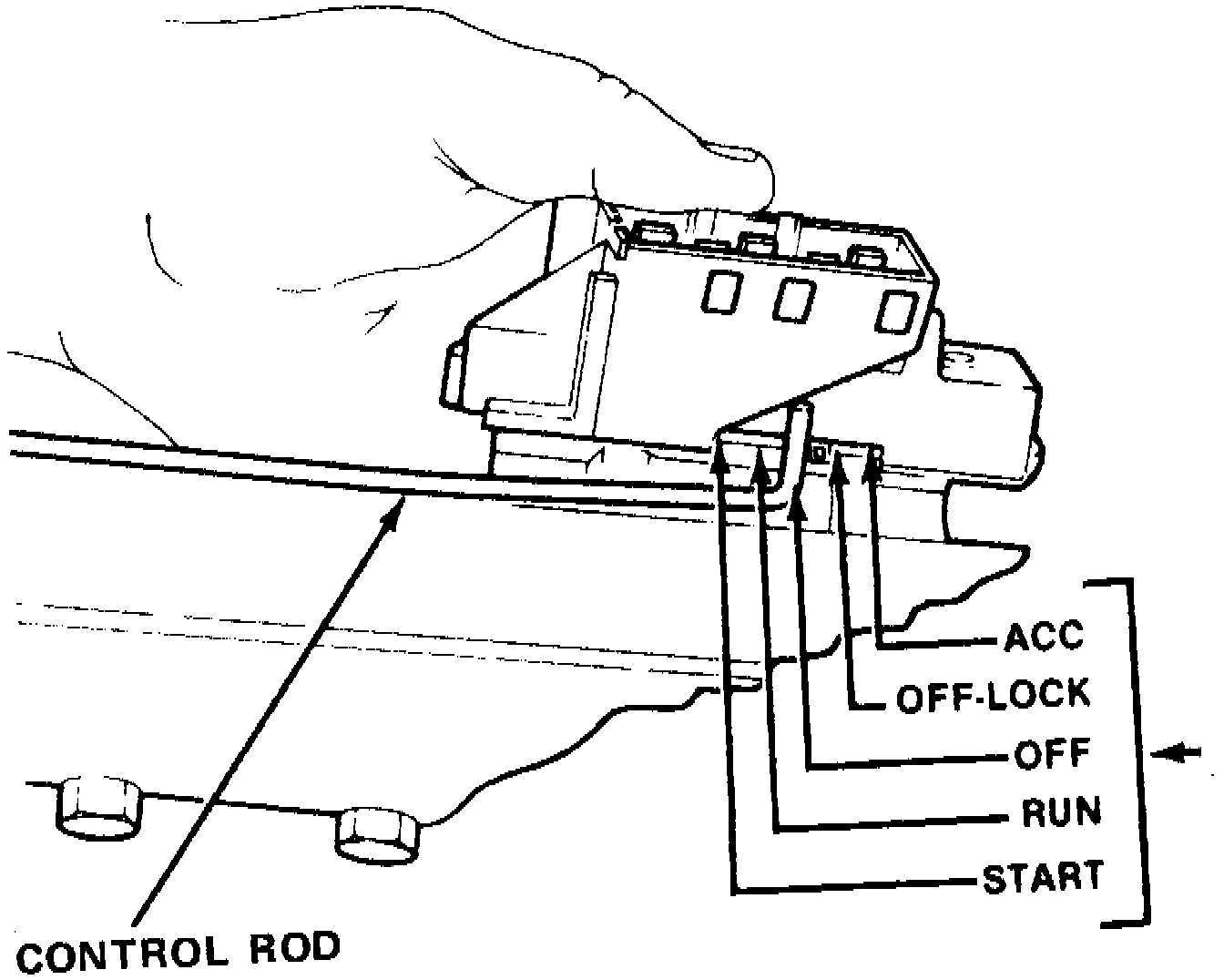 5. Position switch slider to Accessory position as shown. Place ignition key in Accessory position, then insert control rod into switch and install attaching screws.