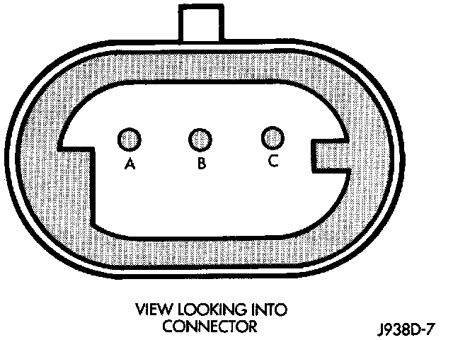 2. Place an ohmmeter across terminals B and C (SEE Image). Ohmmeter should be set to 1K-to-1OK scale for this test. The meter reading should be open (infinite resistance). Replace sensor if a low resistance is indicated.