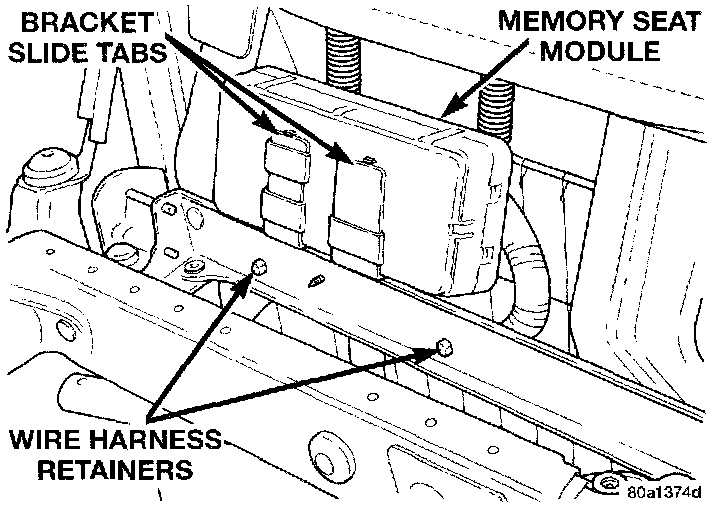NOTE: Following the installation it will be necessary to initialize the memory seat module. This is done by moving each of the power seat adjuster motors (including the power recliner and power lumbar motors) through its full range of motion using the power seat switches. It is necessary for the memory seat module to learn the motor sensor values in each of the adjuster hard stop positions, so that the module can function properly.