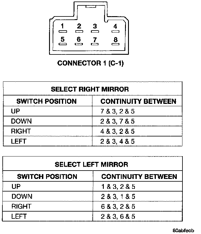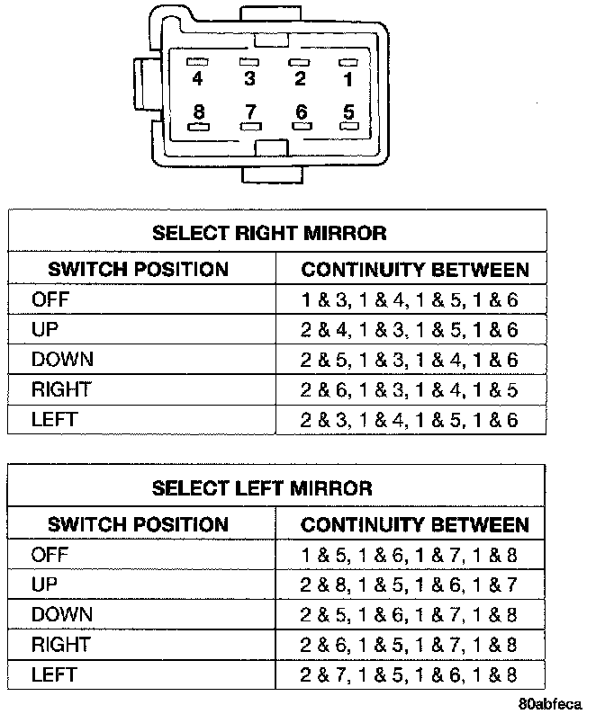 Stand-Alone Power Mirror Switch Continuity: