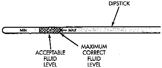 7. Remove dipstick and check fluid level as follows: