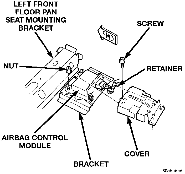 - NEVER STRIKE OR KICK THE AIRBAG CONTROL MODULE, AS IT CAN DAMAGE THE IMPACT SENSOR OR AFFECT ITS CALIBRATION. IF AN AIR-BAG CONTROL MODULE IS ACCIDENTALLY DROPPED DURING SERVICE, THE MODULE MUST BE SCRAPPED AND REPLACED WITH A NEW UNIT. ALWAYS REINSTALL THE AIRBAG CONTROL MODULE PROTECTIVE COVER.