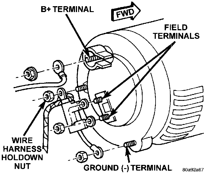 CAUTION: Do not connect the jumper ground wire to the generator field source (+) field terminal. Damage to electrical system components may result.