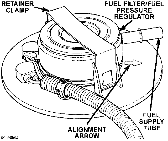 The filter/regulator may be removed without removing fuel pump module although fuel tank must be removed.