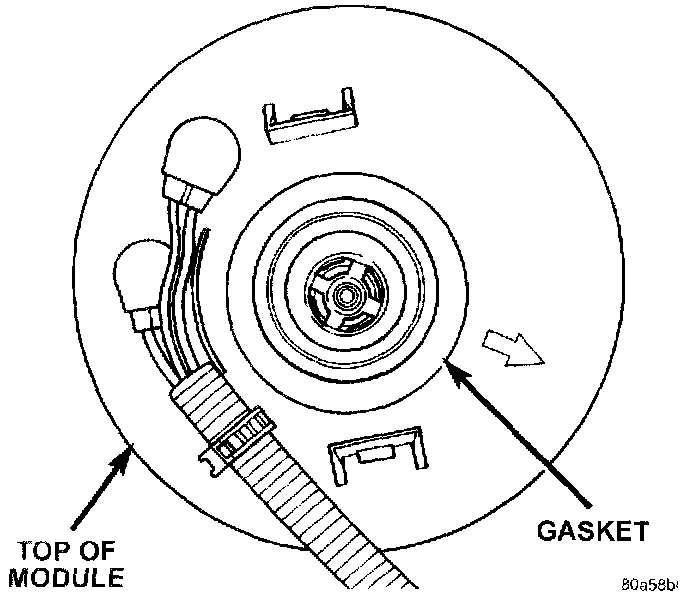 6. The arrow (Fig. 22) on top of fuel pump module should be pointed towards front of vehicle (12 o'clock position).
