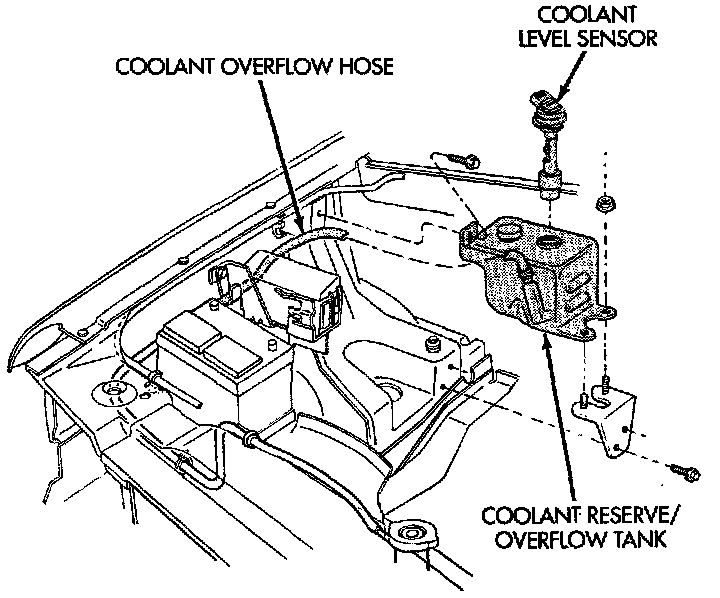 5. Install coolant reserve/overflow tank.