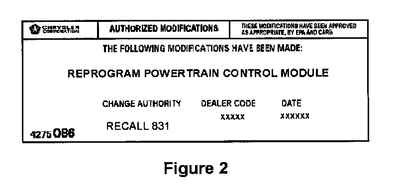Type or print (with a ballpoint pen) the necessary information shown in Figure 2 onto the Authorized Modifications Label. Then attach the label near the VECI label.