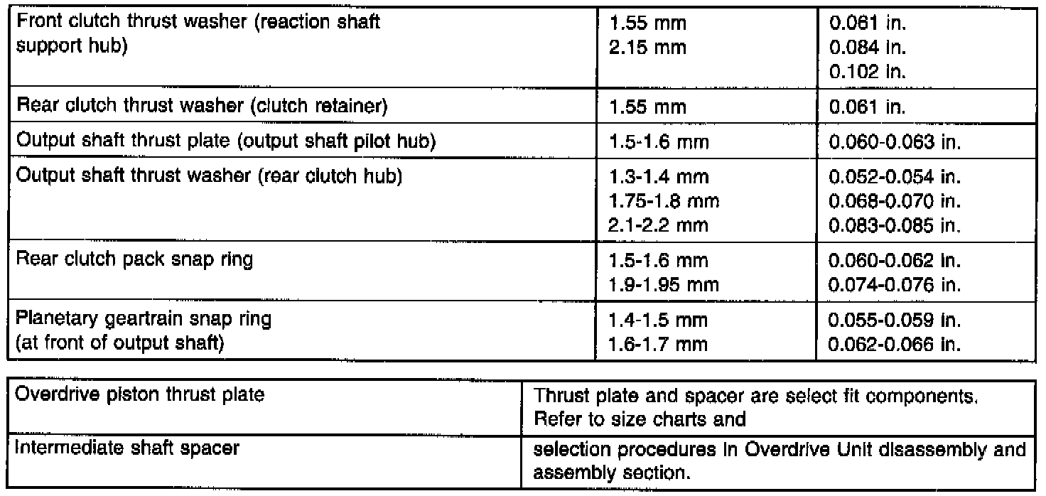 Thrust Washers/Spacer/Snap Ring Dimensions:
