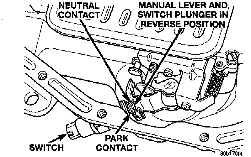 1. Move shift lever to Park and Neutral positions. Verify that switch operating lever fingers are centered in switch opening in case.