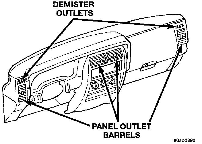 The panel outlet ducts are integral to the instrument panel assembly. Refer to: Body and Frame, Interior Trim, Dashboard/Instrument Panel, Service and Repair, Service and Repair
