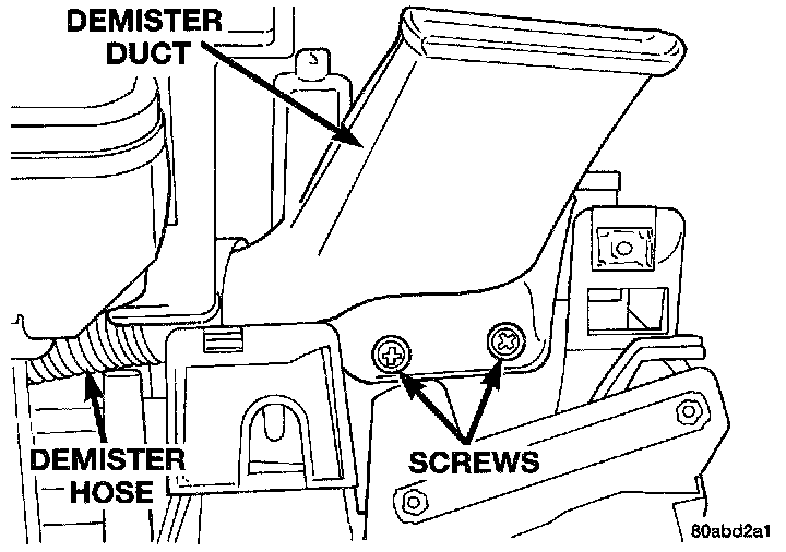 4. Remove the two screws that secure the demister duct to the top of the instrument panel.