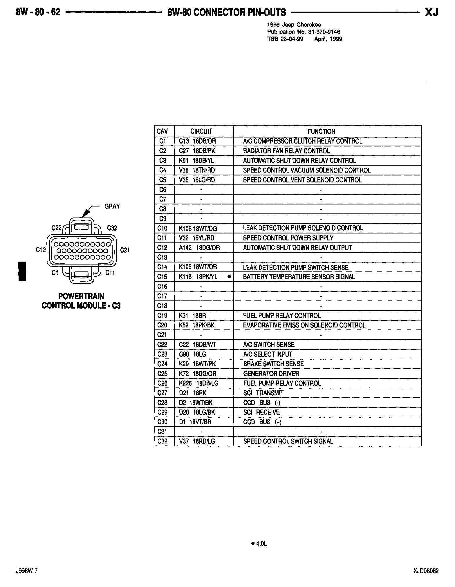 1999 Cherokee Service Manual - Publication Number 81-370-9146